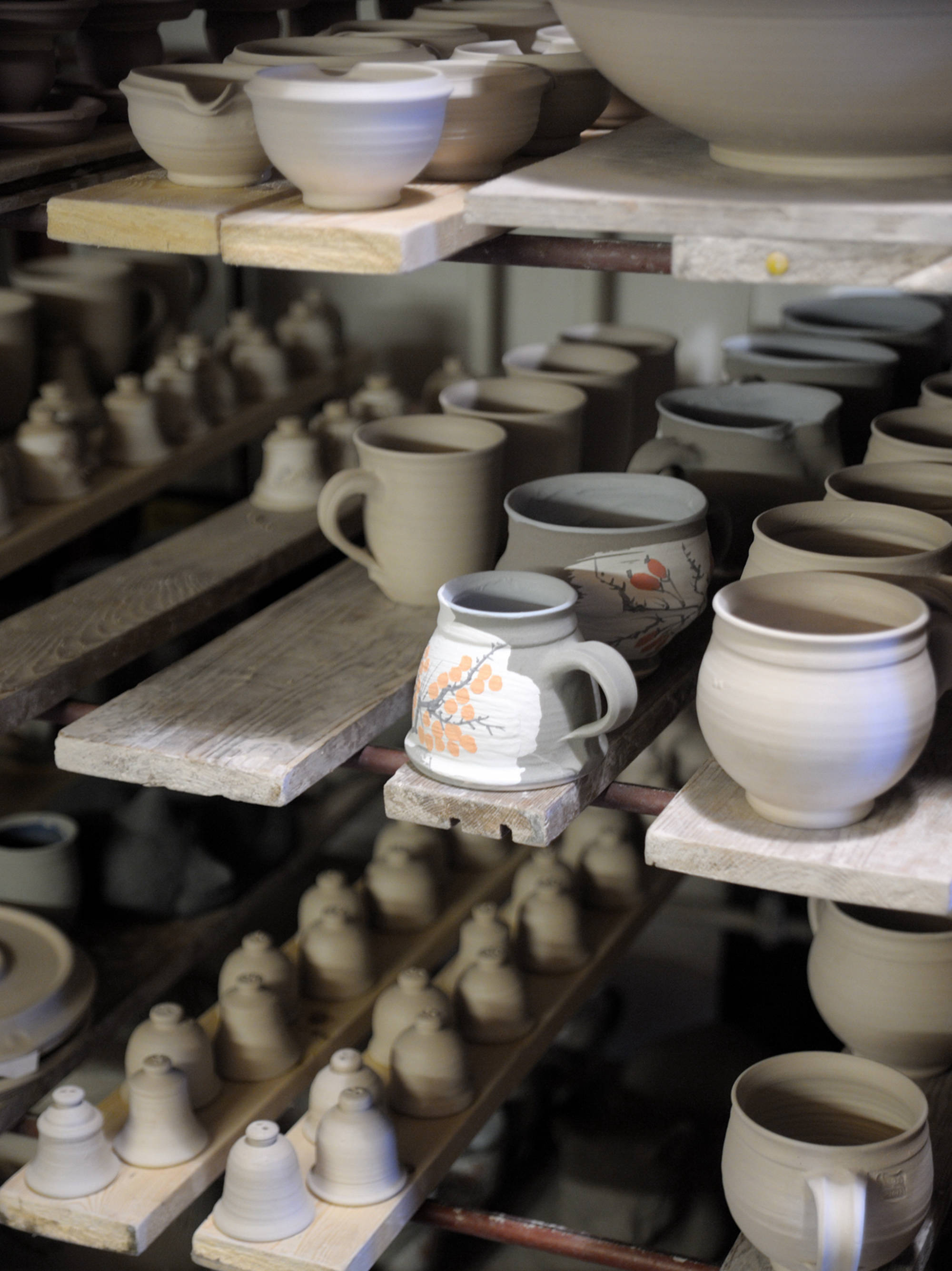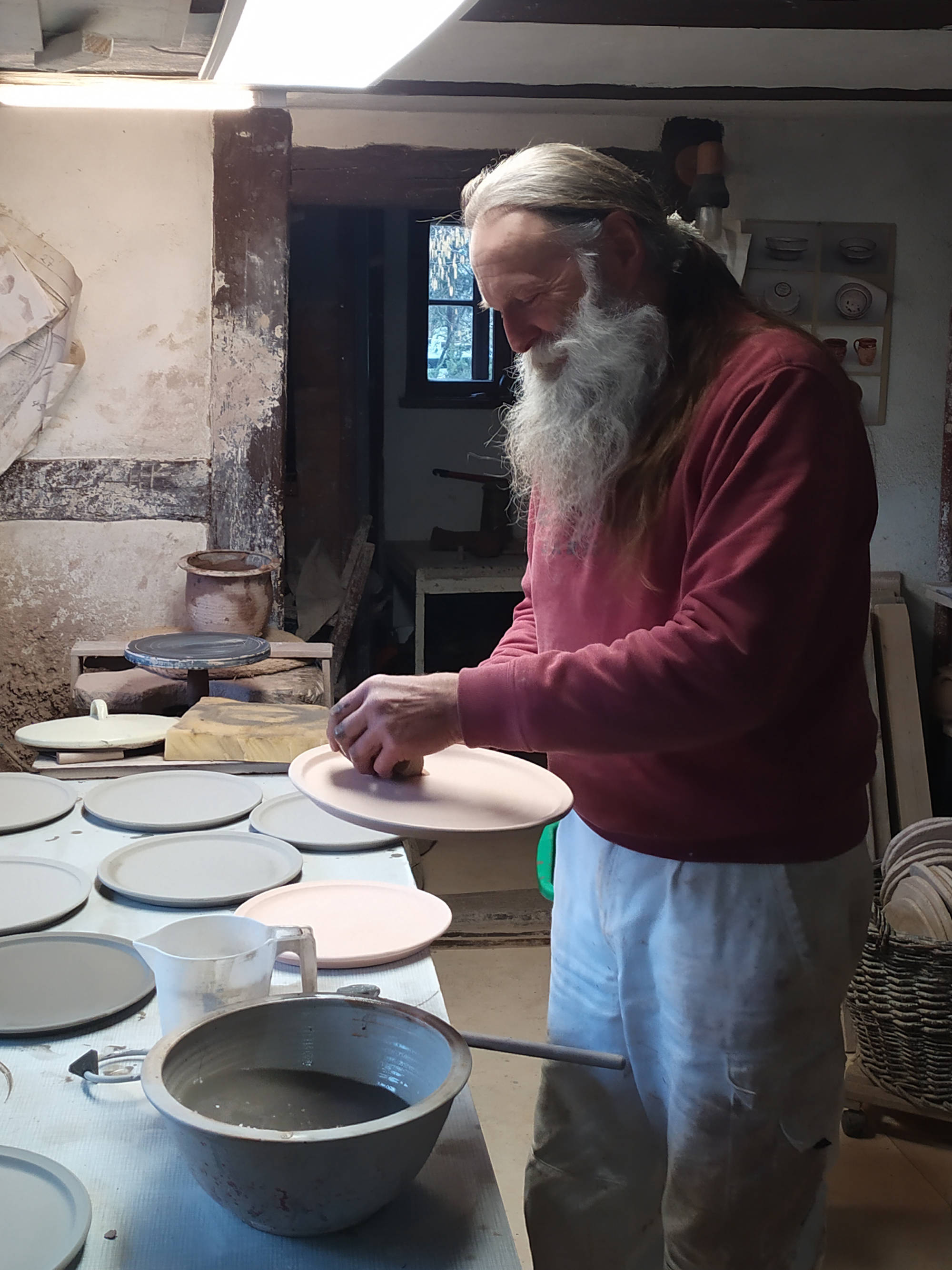 Der überwiegende Teil unserer Keramik entsteht auf der Töpferscheibe. Klassische Formen, bei denen die Funktionalität überwiegt, wechseln mit Stücken, bei denen ein freieres Design im Vordergrund steht.