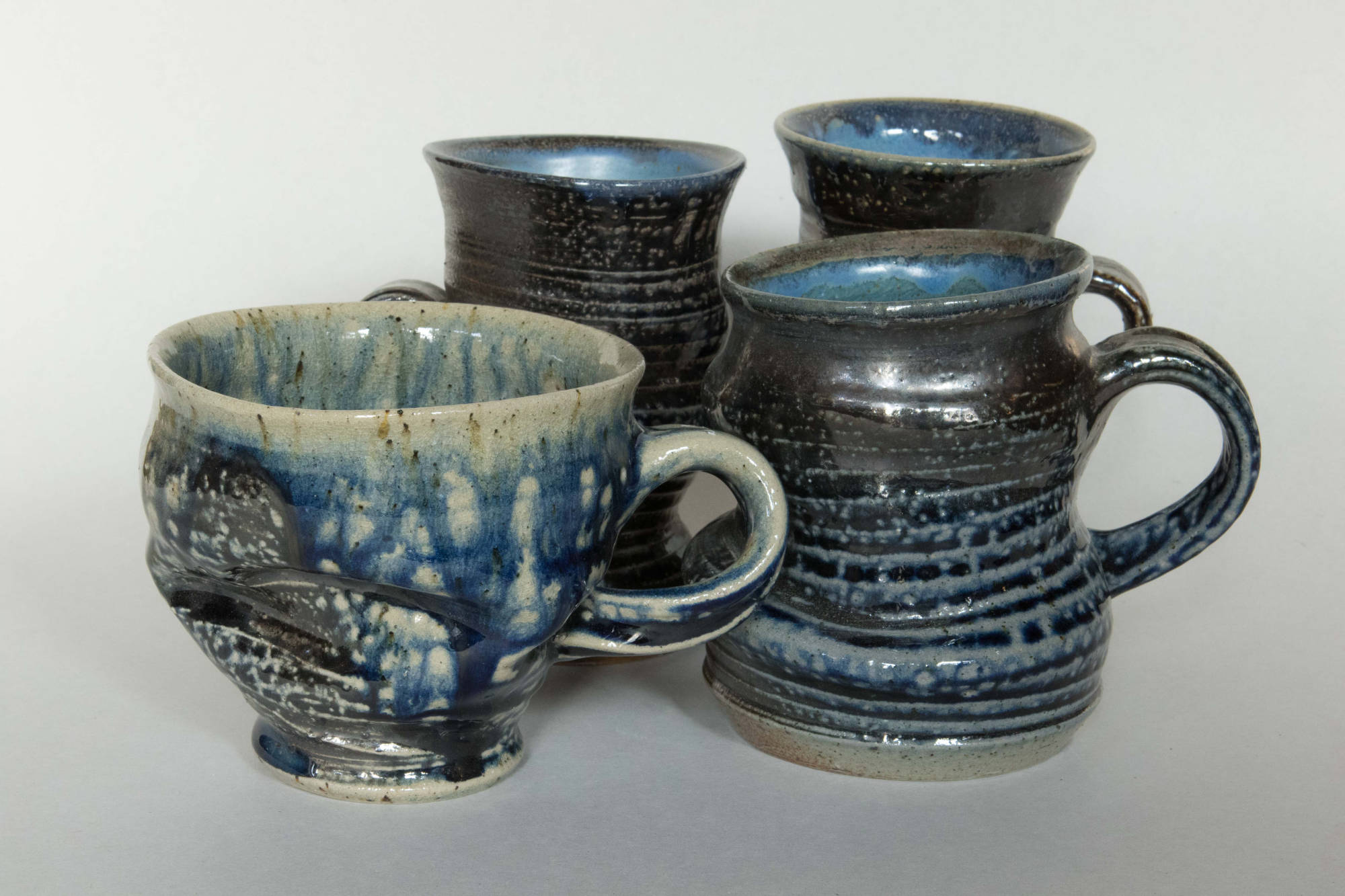 Manchmal lassen wir auf der keramischen Oberfläche nur das Feuer und seine Spuren sprechen, die es hinterlässt. Dann gibt es wiederum Gefäße, wo der zarte Pinselstrich auf der Glasur das Gefäß verschönert oder kraftvolle Ritzdekore die Oberfläche beleben.