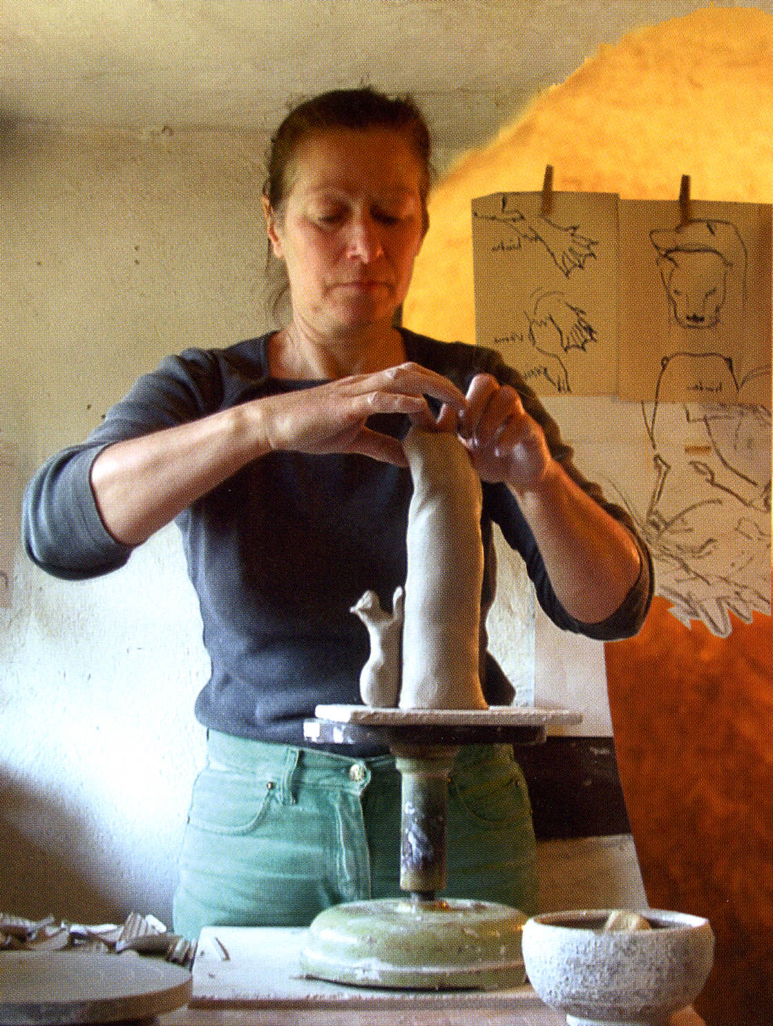 Der überwiegende Teil unserer Keramik entsteht auf der Töpferscheibe. Klassische Formen, bei denen die Funktionalität überwiegt, wechseln mit Stücken, bei denen ein freieres Design im Vordergrund steht.
