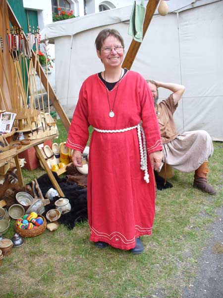 | Christel mit dem Kleid, das ich für sie genäht und bestickt habe. |