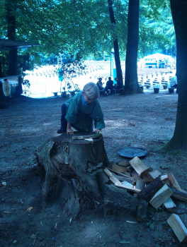 | Wolfgang beim Feuer machen | Vera im Metstand ... in neuer Gewandung |