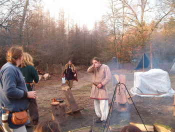 zu kriegen und so wurden die Männer abends abgebrüht,