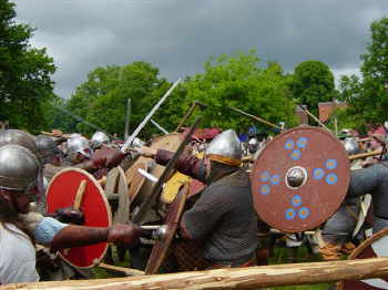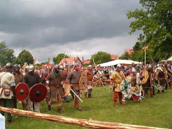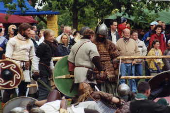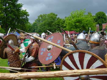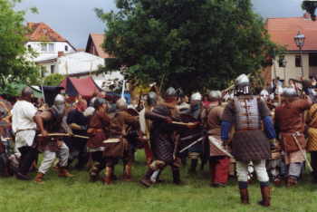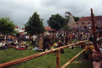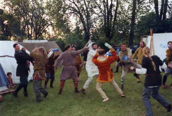 | Das Gegenstück zur richtigen Schlacht - | der Kampf mit Plasteflaschen - auf jeden Fall sehr lustig. |