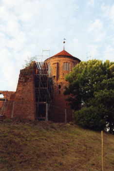 | Die Burg soll im kommenden Jahr fertig sein. | Blick vom Lager zur Burg |