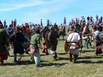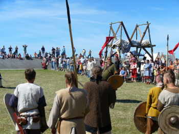 | Götz in Hochform | Die Wikinger erscheinen hinter dem Deich |