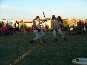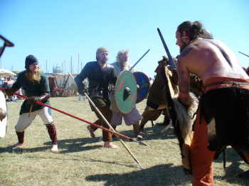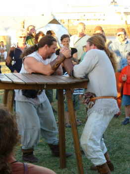 | Erst Armdrücken... | ... dann ein Schwertkampf |