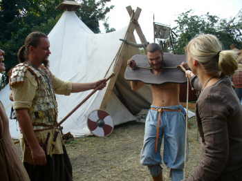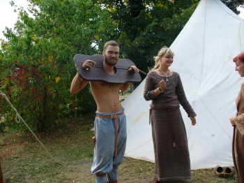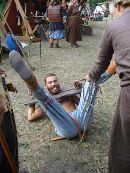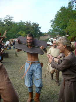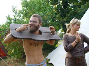 | Saetas "Küchenfeen" | Clemens probiert die Schandgeige aus. |