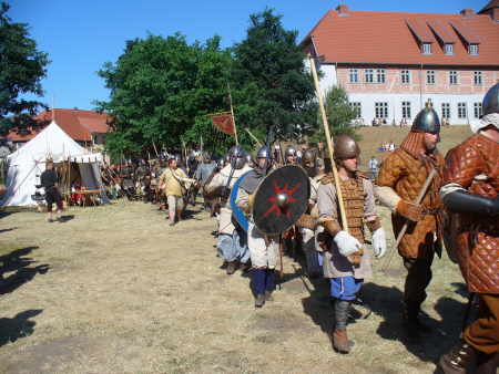 | Einziger Negativpunkt mal wieder - die sanitäre Situation: das Licht in der Dusche war noch immer nicht repariert, es gibt keine Möglichkeit sauber zu machen, keine Mülleimer und bei so vielen Teilnehmern die Duschen im Burgkeller nicht zu öffnen ist schon mehr als kleinlich. Die Stadt Neustadt-Glewe bekommt als einzige Location weit und breit alle Darsteller für 0 Euro - da könnte man doch bei solchen Sachen großzügiger sein! Wie immer war die Frau, die für die Burgtoilette zuständig ist, sehr nett. Aber die Pächter des Waschhauses sollte man doch endlich mal austauschen - noch unfreundlicher geht es ja nun nicht!
