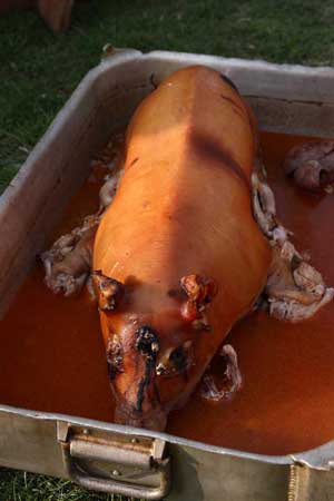 | Das Schwein in der Urform - leider nicht gar | Faxe guckt schon sehr skeptisch |