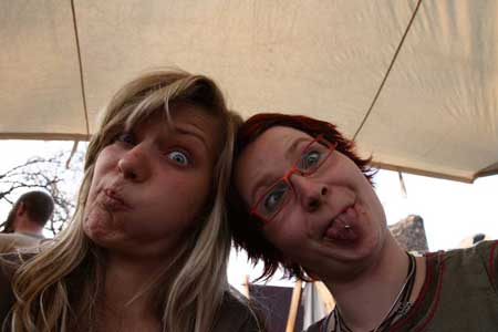 | Katja beim Futtern | Gute Ware und gute Geschäfte - bei Bettina und Peter Und man beachte - ein neuer Stand - nun noch ne Nummer größer