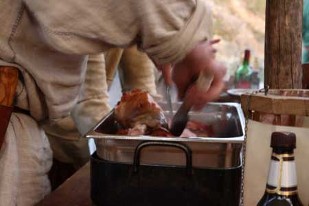 | Rollo und Alex | Das nun gare Schweinefleisch wird aufgeteilt |