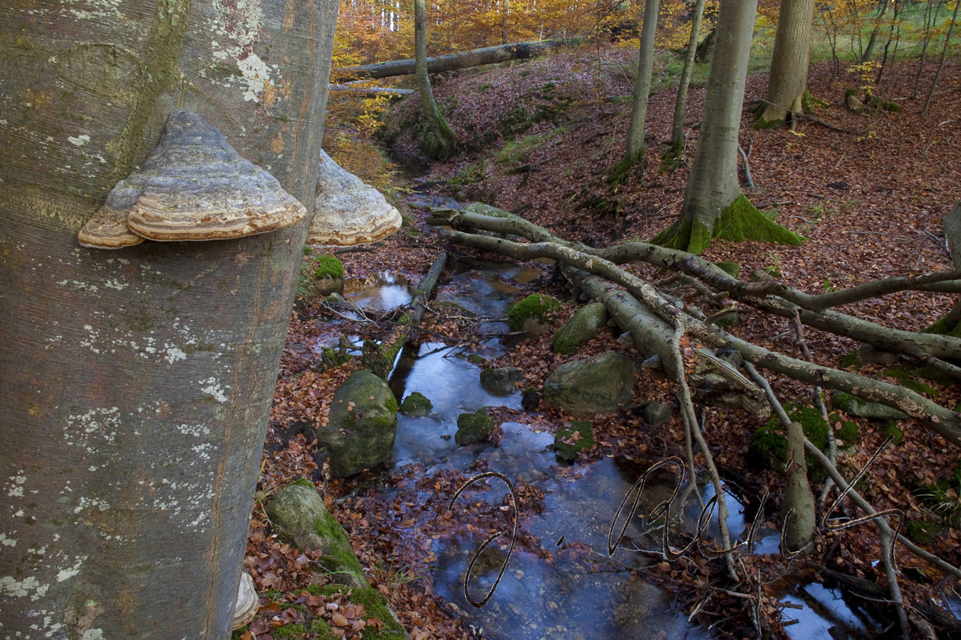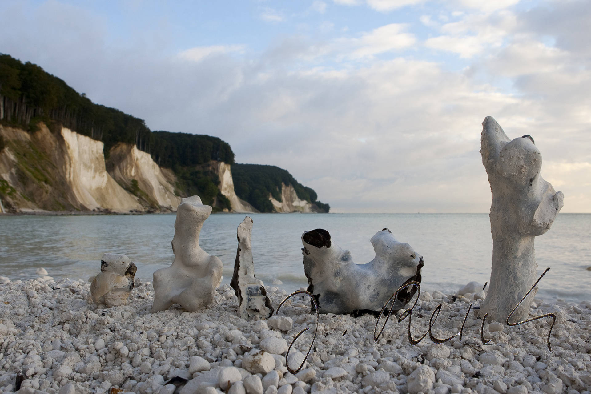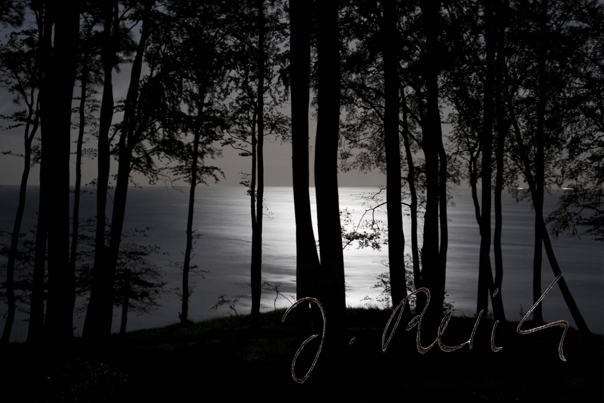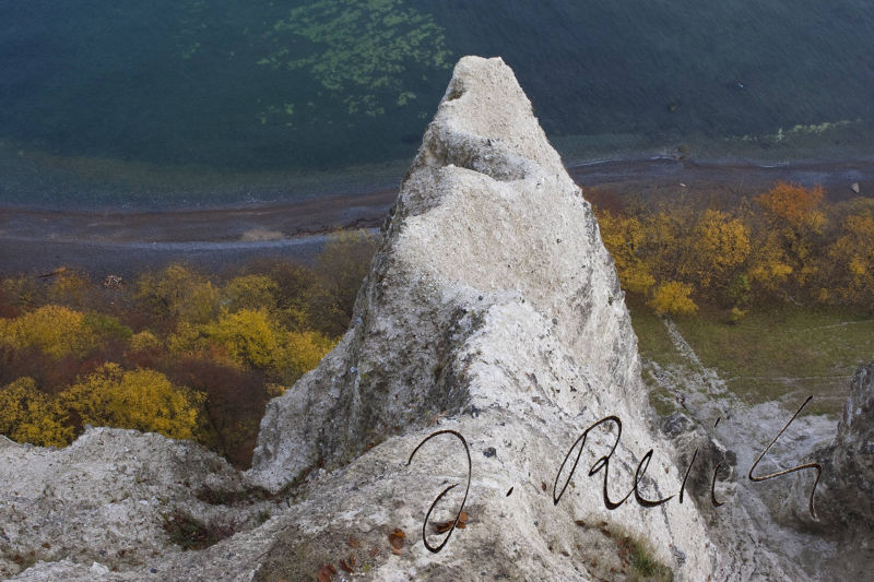 Der helle Laut des Flints ist es eigentlich nur, den das überschrubbelnde Wasser verursacht. Er schafft es bis an die Oberkante zu gelangen. weiter nicht. Nur wenige Schritte zurück ist davon nichts mehr zu vernehmen. Auch fehlt heute das Brandungsecho aus den Buchenkronen vollständig. Das Meer ist also noch da! Ebenso der Strand. Der Nebel schafft eine eigenartige Stimmung über dem unsichtbaren Meer, von dem nur das leise Klirren zu hören ist, die mich gefangen nimmt.