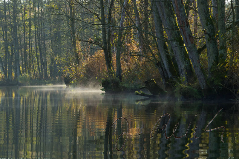 Unserer Aufmerksamkeit entgeht nichts – weder die Silbermöwe, die zielstrebig und grimmig vorübereilt, als müsse sie schnell zum Dienst, noch der Kormoran, der nach erfolgreicher Nachtjagd satt auf einem Ast seine Flügel trocknet. Dann endlich: im Gebüsch raspelt es – Geräusche, die nur ein Biber verursachen kann. Es ist in der morgendlichen Stille deutlich und weithin zu hören und so dirigieren wir das Boot ganz langsam in seine Richtung. Nach wenigen Augenblicken können wir dann in einem Biberwechsel unter Gestrüpp, beidseitig von schwarzen Torfwänden eingefasst, einen pelzigen braunen Klumpen ausmachen. Beim Näherkommen muss der Biber uns mit seinen kurzsichtigen Augen schemenhaft bemerkt haben: Er hält inne, seine Nase kommt hoch und versucht Wind zu bekommen, was dank Gegenwind nicht gelingen kann. Jetzt kommt er wenige Schritte hervor, und taucht, ohne dass wir ihn richtig sehen können, in seinem Kanal ab.