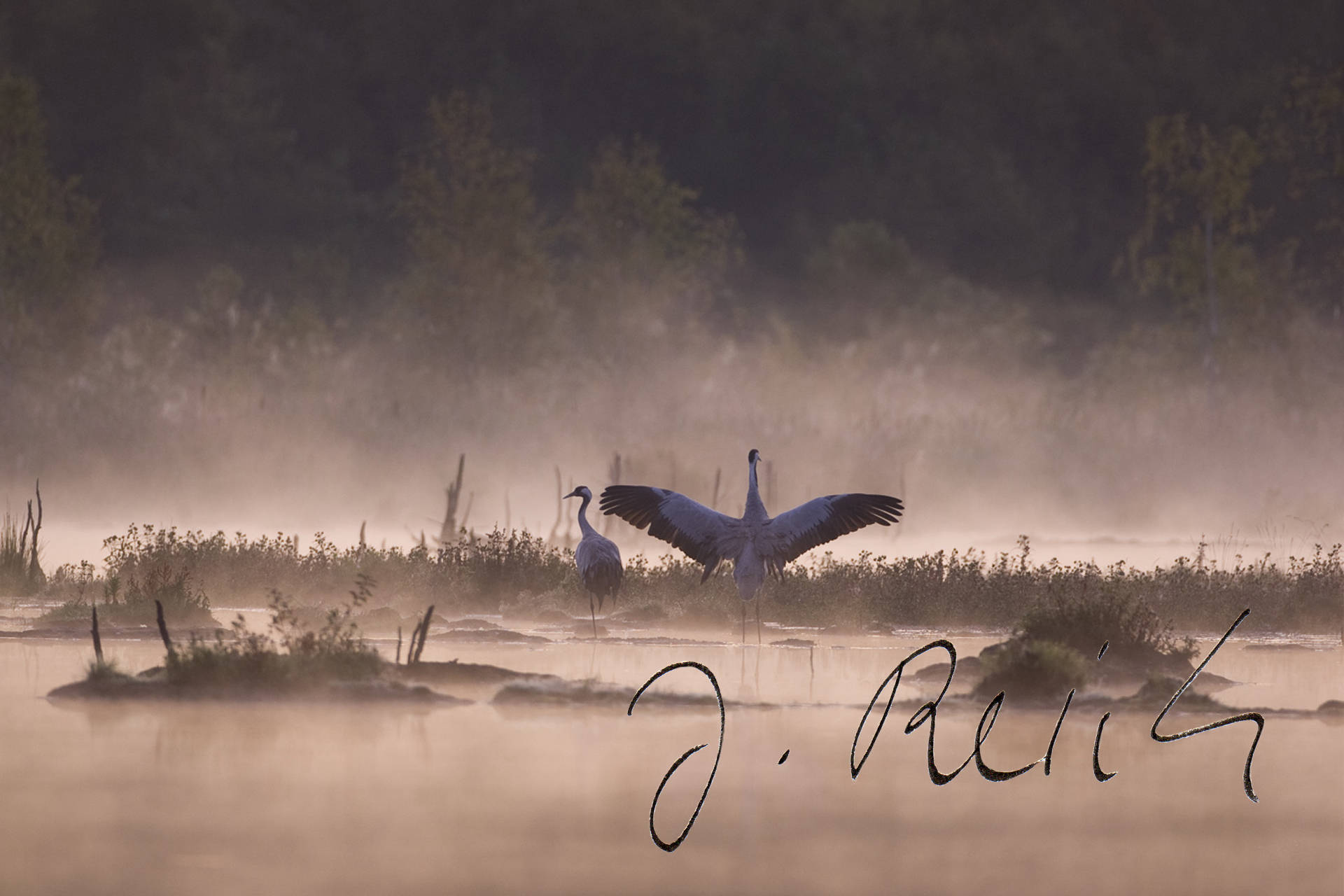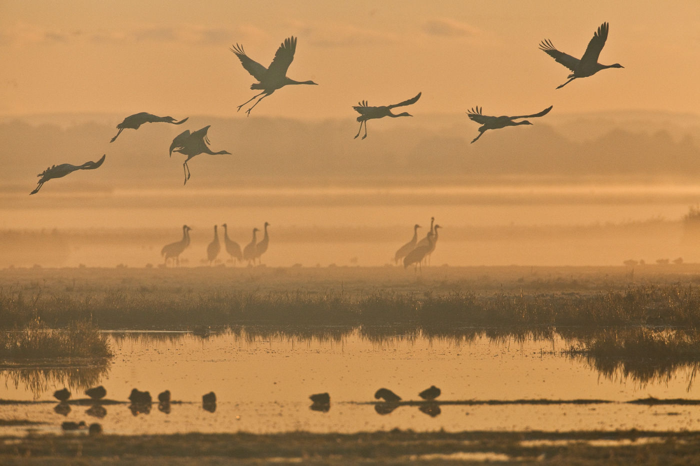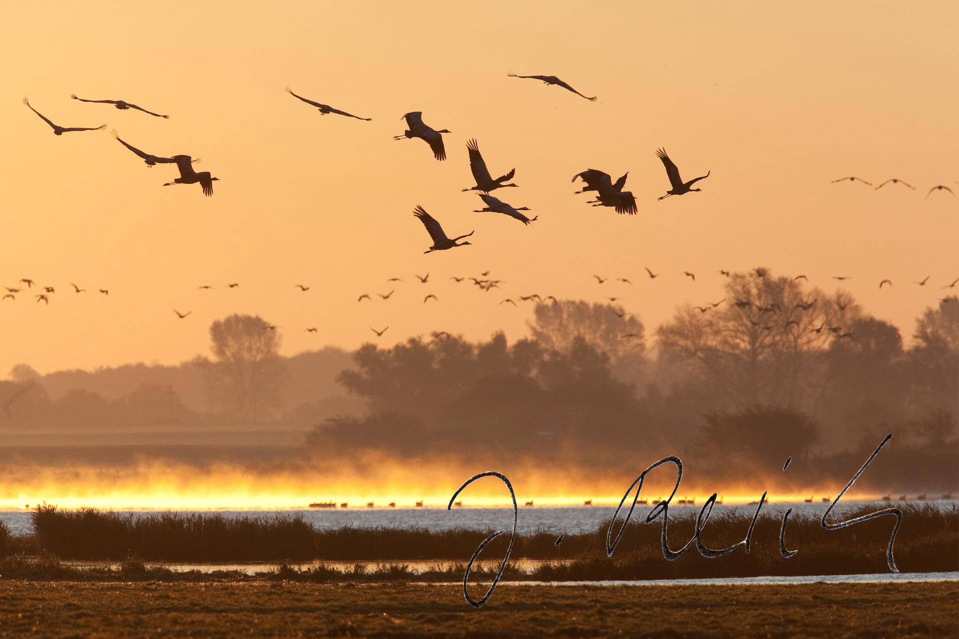 Keine andere Vogelart ist in Mecklenburg-Vorpommern optisch und akustisch so auffällig, fast über alle Monate des Jahres so präsent wie der Kranich. Nur wenige Wintermonate verbringt er im warmen Südwesten Spaniens, sein Kommen und Gehen ein faszinierendes Ereignis. Selbst von dieser Vogelart fasziniert, begleite ich sie fotografisch von ihrer Ankunft bis zum Abflug.