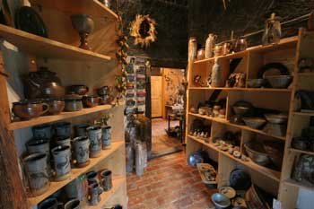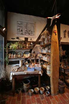 Neben den ganz praktischen Töpfen stehen zur Belebung auch immer kleinere Figuren aus dem Bereich Skulpturen dazwischen.