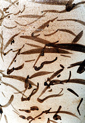 Dann gibt es wiederum Gefäße, wo der zarte Pinselstrich auf der Glasur das Gefäß verschönert oder kraftvolle Ritzdekore die Oberfläche beleben.