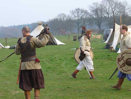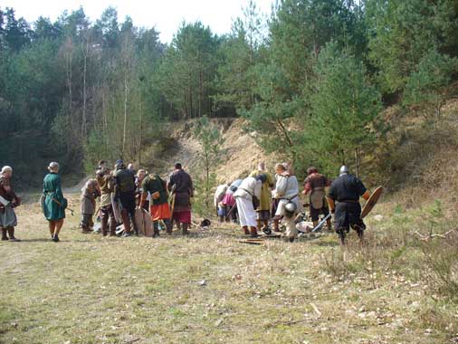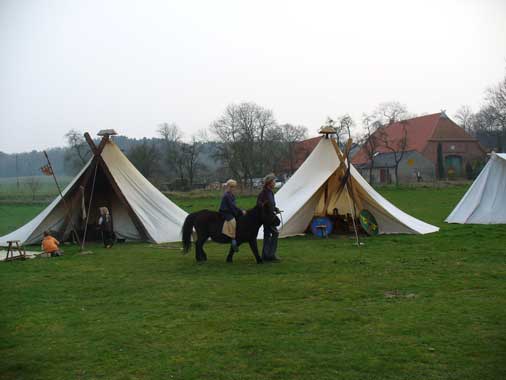Am Samstag ging es um halb 10 los - Playing in the wood - das dauert bis zum frühen Nachmittag, dann Pause zum Essen und nachmittags Linetraining auf der Wiese. Da sind die Männer dann abends platt wie die Flundern und fallen nach dem einen oder anderen Bierchen in die Falle. Ich habe Kohlsuppe mit Hackklößen gemacht - kam gut an.