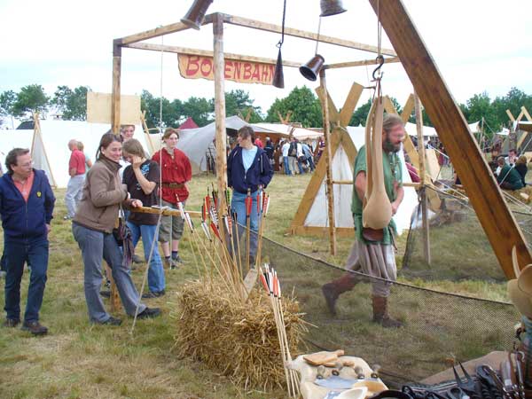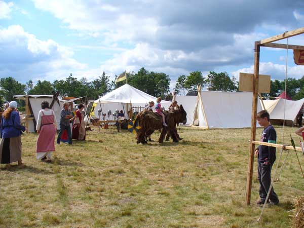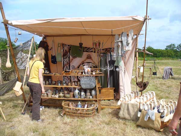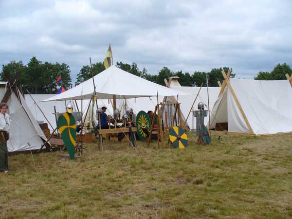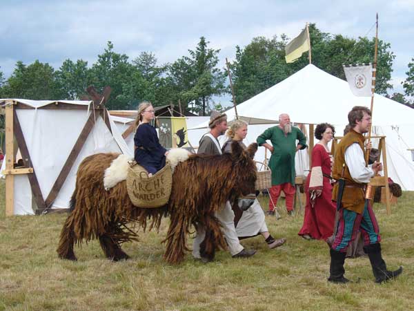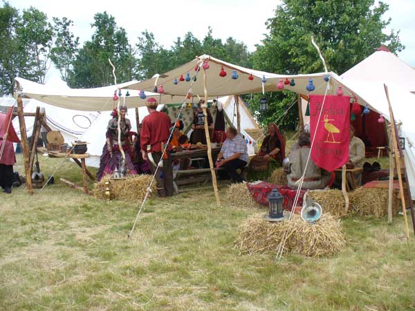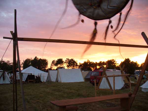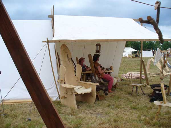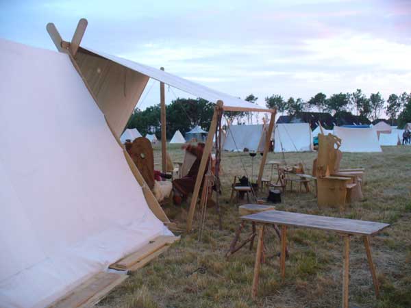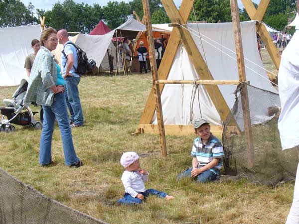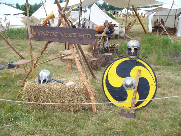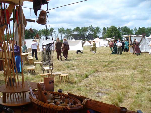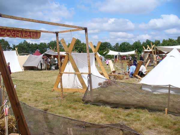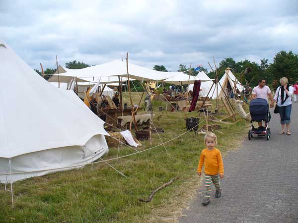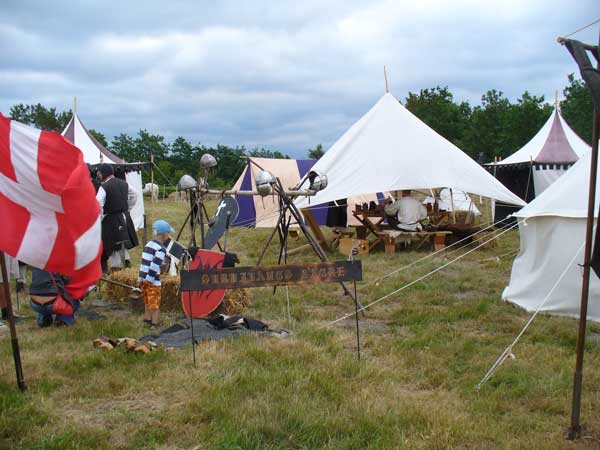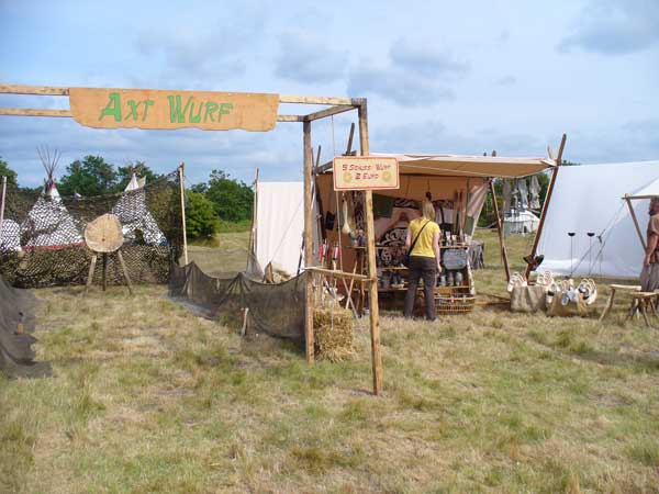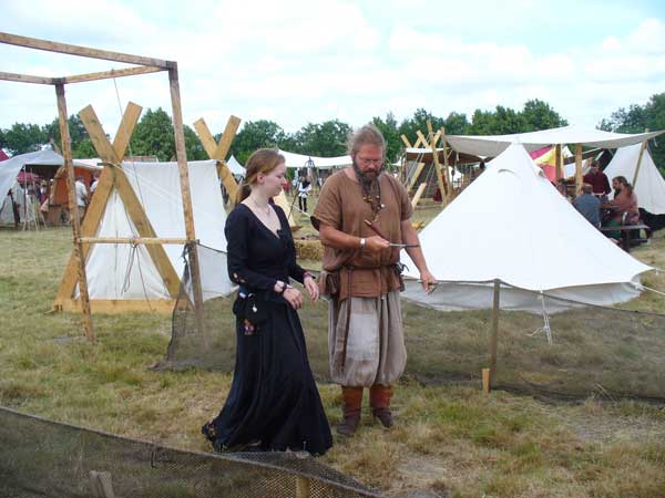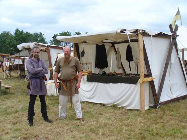 Das Aufbauen am Freitag war leider kein Vergnügen, auch wenn die Sonne vom Himmel lachte - ein böiger Wind fegte über den wirklich tollen Platz für diese Veranstaltung und machte nicht nur uns zu schaffen. Das Händlerzelt haben wir nicht aufgebaut bekommen - der Versuch scheiterte und ich mußte Laschen wieder annähen.