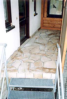 Fußboden im Haus-Eingangsbereich mit Sandstein-Mosaik