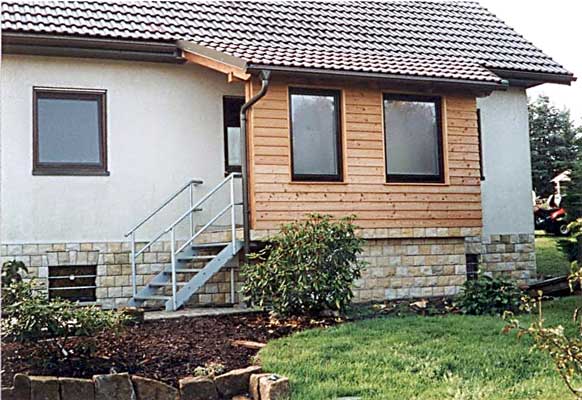 Gesamteindruck von Eingang und Haussockel